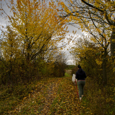 Zazwyczaj chodzimy całą ferajną. Najczęściej Bianca maszeruje ramię w ramię z Lawendą (domowo: Lawi). Elizę zabieramy osobno – tak lubi, tak jej wygodniej i, co ważne, wtedy możemy skupić się tylko na niej. Dziś jednak Lawi… ogłosiła strajk. Ponieważ trafiła jej się skóra wołowa wyjątkowo godna uwagi, uznała, że to misja priorytetowa. W związku z tym została w domu, aby dopilnować, żeby nikt tej skóry nawet nie powąchał. 😉