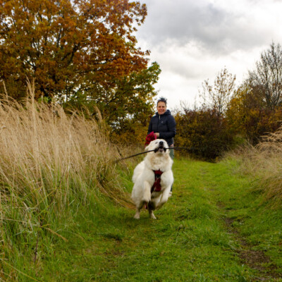 - Dziś: Lawi wybrała „projekt Skóra Wołowa”, więc w teren poszłyśmy tylko z Biancą. I bardzo dobrze – mogłyśmy zrobić dłuższy trening węszenia i kilka przywołań „na medal”.