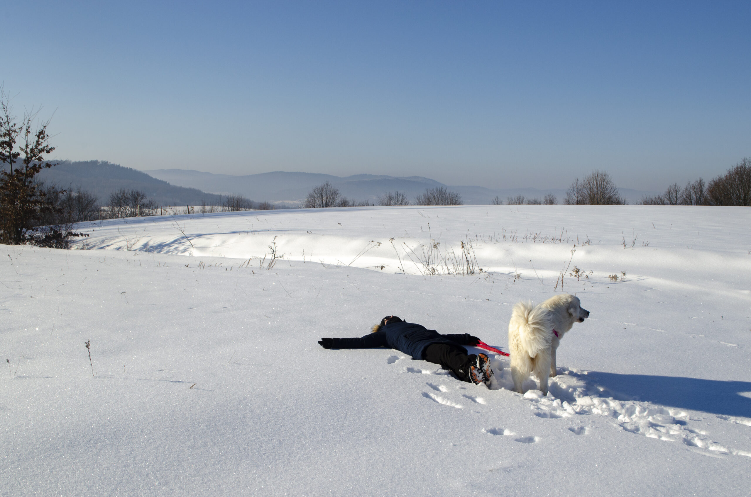 Bianca zapadała się po pas, regularnie znikając w zaspach, by po chwili wynurzyć się metr dalej z miną mówiącą: „widzisz? tak się chodzi”.